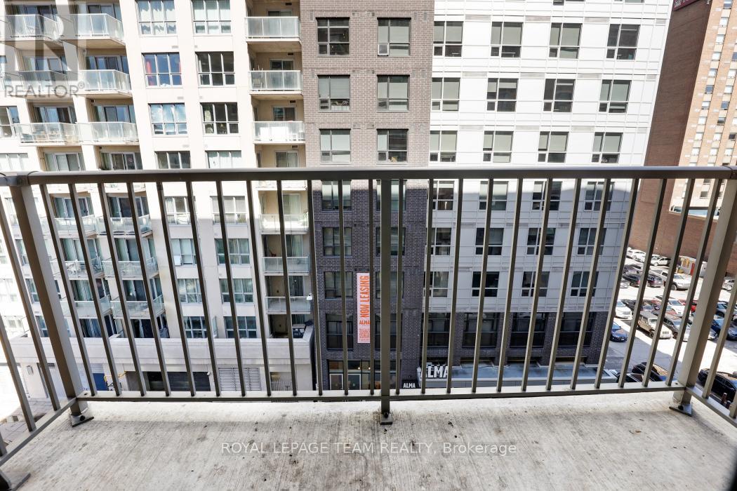 Welcome to this bright and thoughtfully designed 1 bedroom plus den condo in the heart of sought-after Sandy Hill. Featuring an open-concept layout with hardwood floors, high ceilings, and large windows, the space is filled with natural light and offers a comfortable flow for both everyday living and entertaining. The kitchen is equipped with granite countertops, ample cabinetry, and a breakfast bar overlooking the spacious living and dining area, creating an inviting and functional central living space.The enclosed den offers excellent versatility, ideal as a home office, guest room, or additional living area. The generous primary bedroom includes ample closet space and convenient access to the full bathroom. Enjoy the added convenience of in-suite laundry, a private balcony for outdoor relaxation, as well as underground parking and a storage locker.Residents benefit from fantastic building amenities including an indoor pool, fitness centre, party room, and BBQ area, providing comfort and lifestyle convenience year-round. Perfectly located just steps to the ByWard Market, Rideau Centre, LRT station, University of Ottawa, grocery stores, LCBO, cafés, and some of the city's best restaurants, with easy access to the Rideau Canal, parks and Parliament Hill. An exceptional opportunity to enjoy vibrant downtown living in one of Ottawa's most walkable and established neighbourhoods. (id:4069)